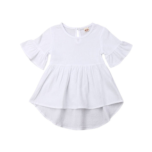 Summer Casual Toddler Baby Girls Dresses Solid Flare Short Sleeve